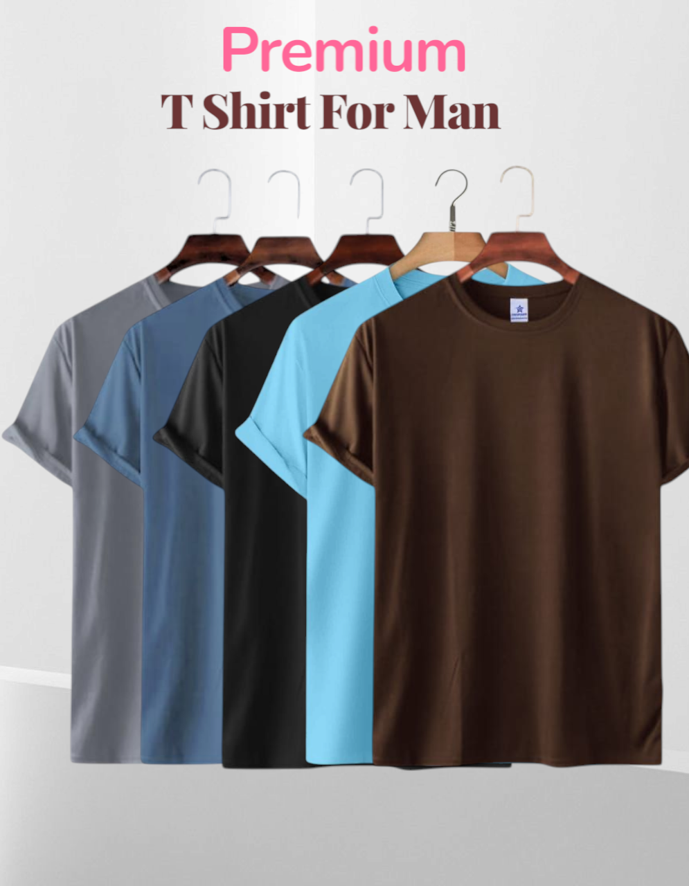 Mens Premium Lycra Cotton Blank T-shirt – Combo 5 Pcs Surma, Petrol,Blacl, Pest, Coffee