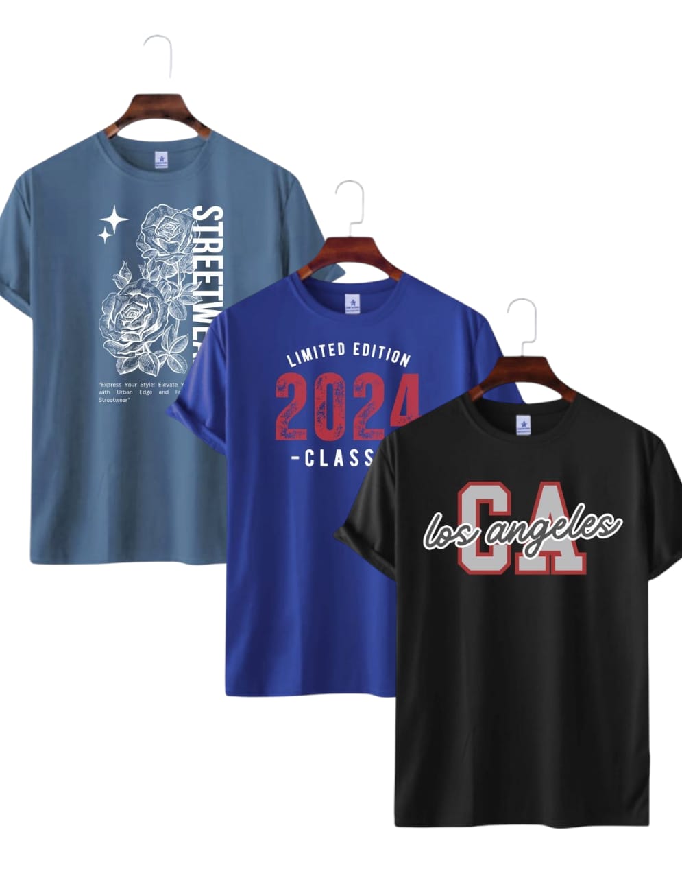 Mens Premium Lycra Printed T-shirt – 3 Pcs Combo Petrol,Black, Royal Blue