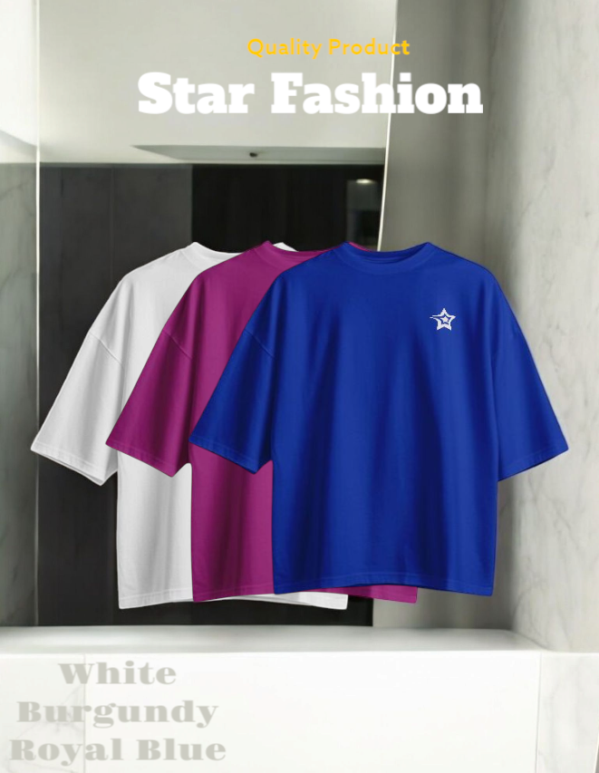 Star Fashion Signature Solid Drop-Shoulder -Combo White,Royal Blue,Burgundy